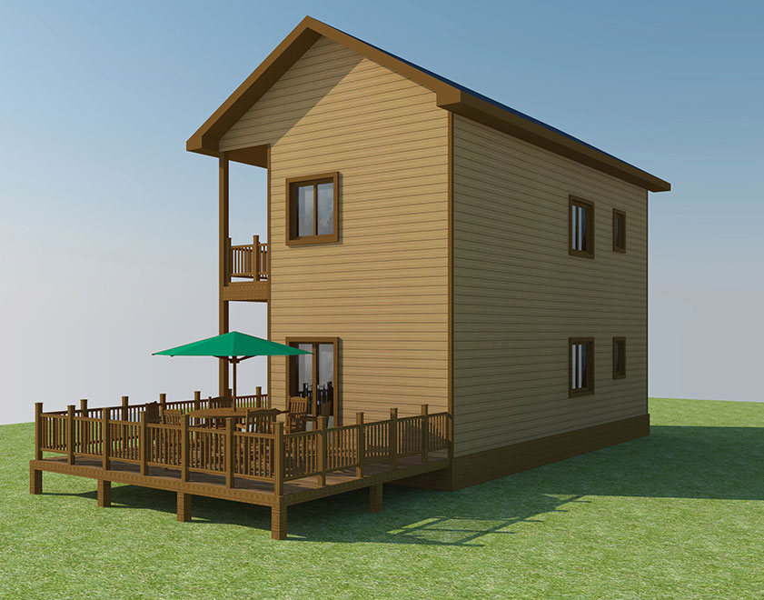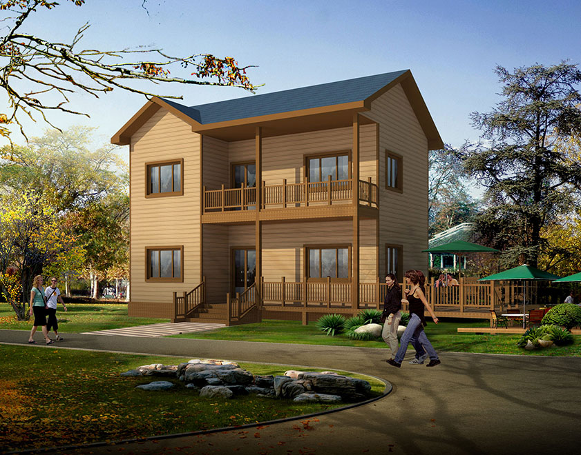 外墻用木塑掛板(材料可選),石膏板內墻(材料可選),鋁合金門窗(材料可選)。