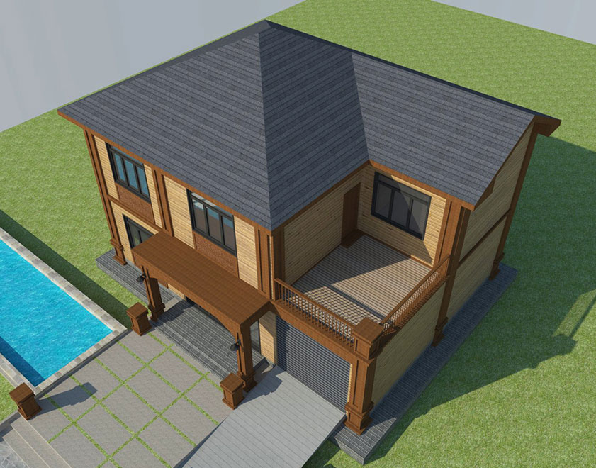 外墻用木塑掛板(材料可選),石膏板內(nèi)墻(材料可選),鋁合金門(mén)窗(材料可選)。