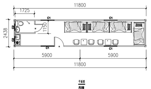 4.1宿舍帶衛生間集裝箱房LDC841: